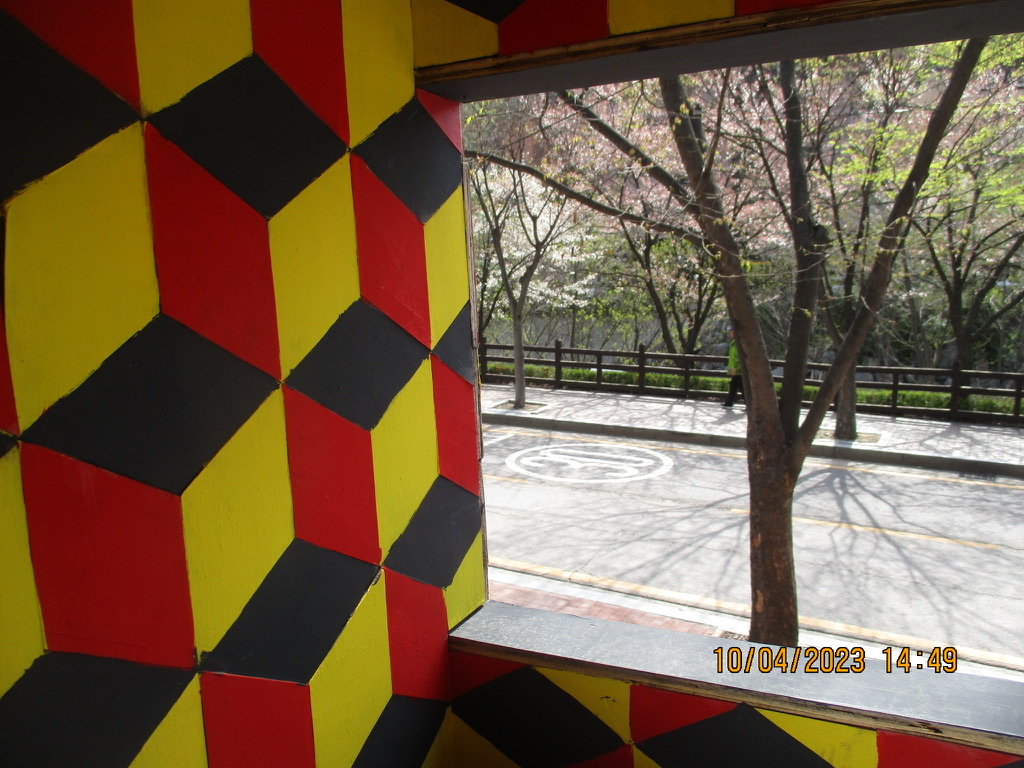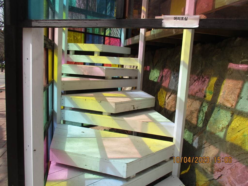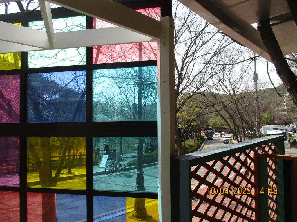 작품 속으로 들어가니까 벽이 색유리처럼 되어 있어 햇살이 투과하니까 무척 아름답게 느껴진다.