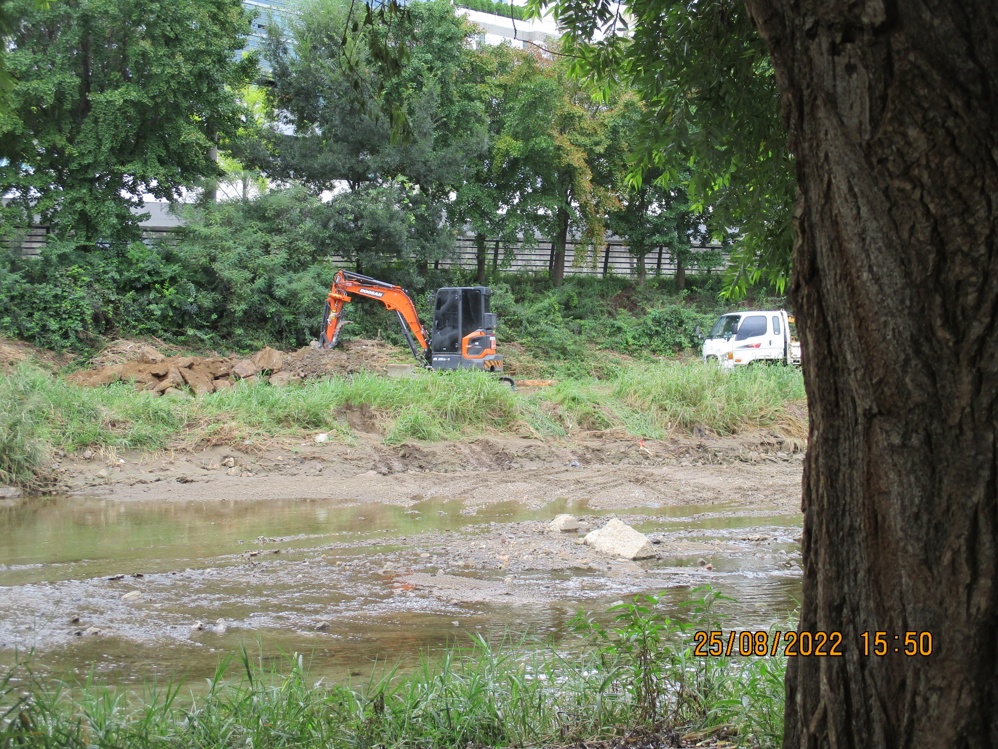 하천가의 나무 대부분이 쓰러져서 하천가가 퀭하다.